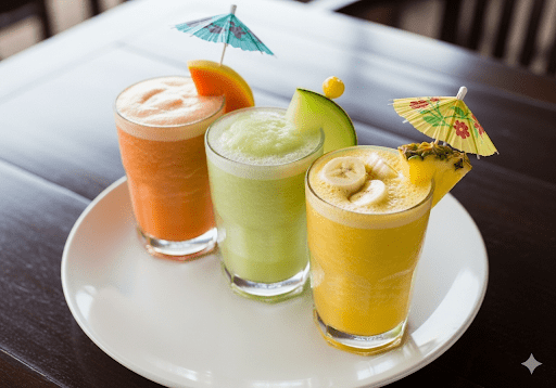 Preparados con frutas frescas como papaya, melón, banano o piña, en agua o leche según tu preferencia.