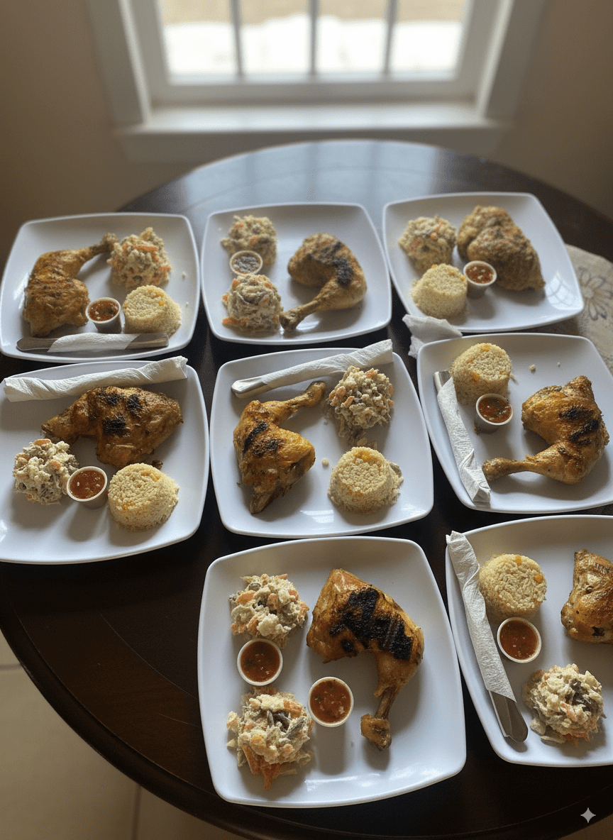Pechuga o pierna preparada al carbón, jugosa y con el toque ahumado perfecto.